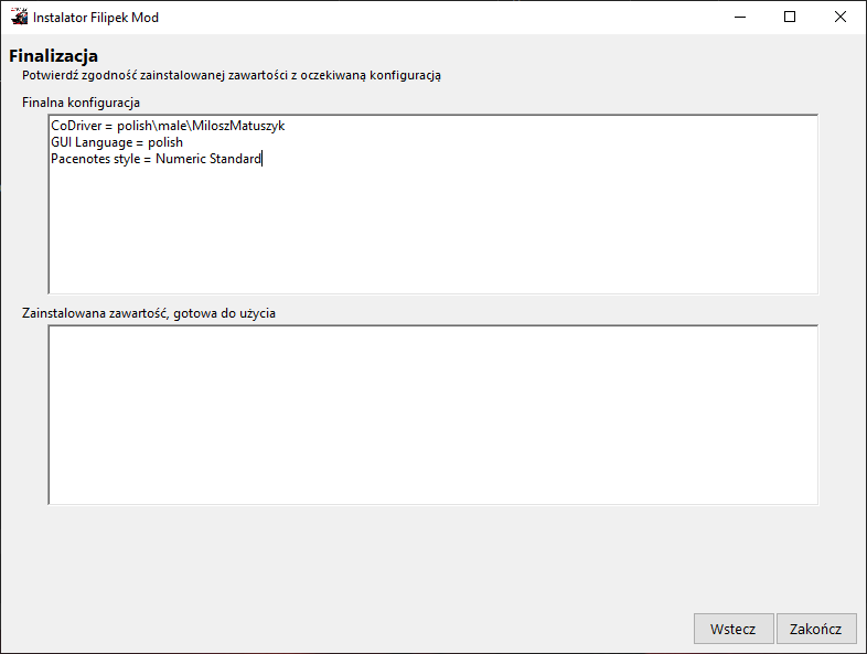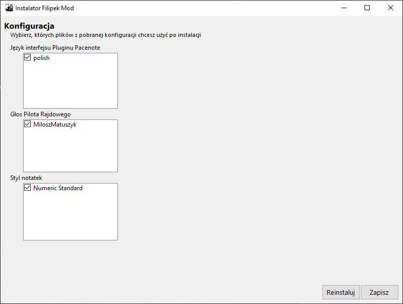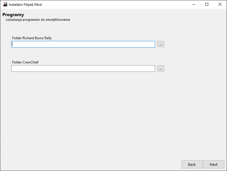 Na trzecim ekranie wybierzecie lokacje do których mają zostać zainstalowane modyfikacje. Aktualnie dostępna jest tylko zawartość do Richard Burns Rally, więc okno CrewChief można pominąć.
