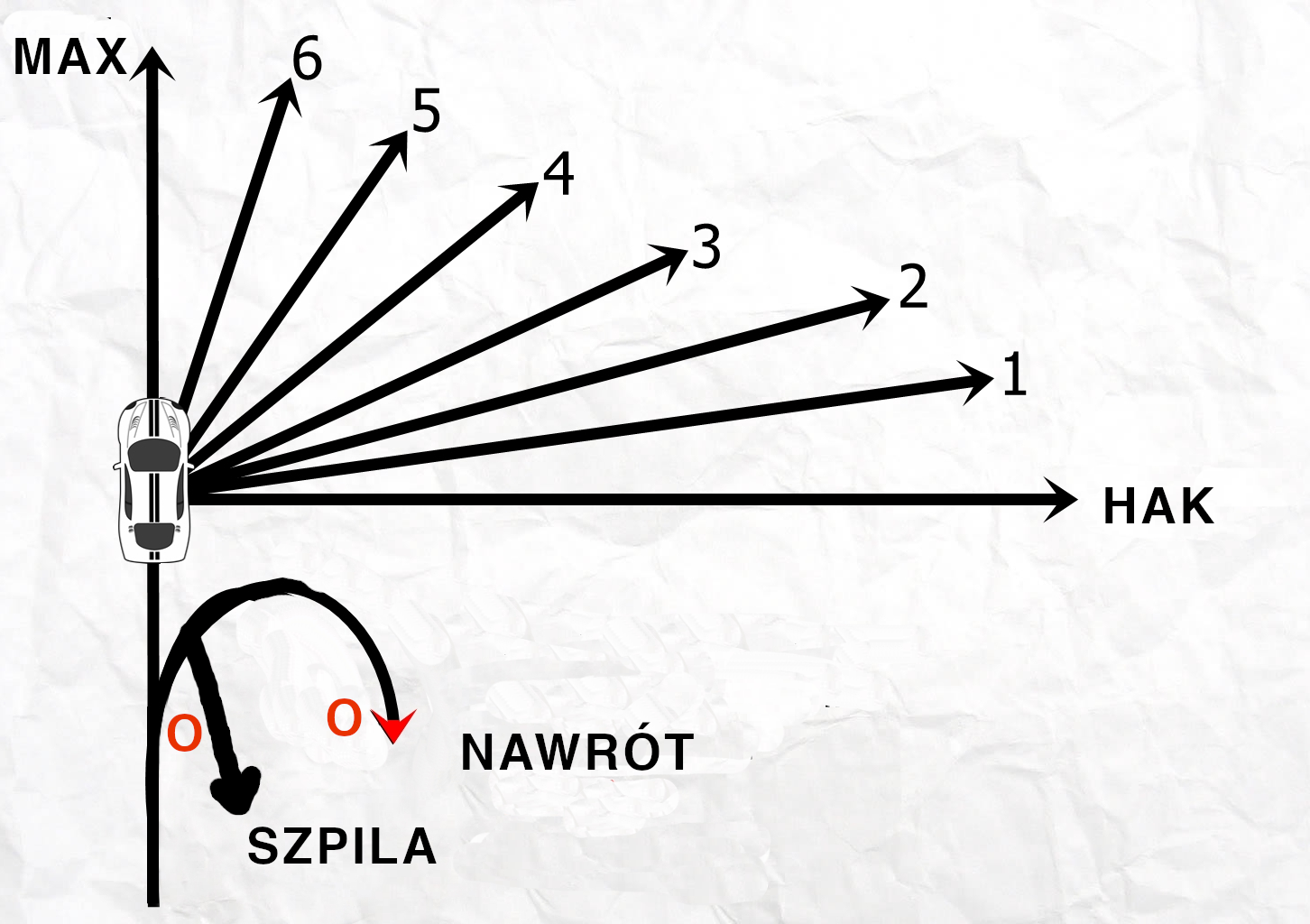 - Szpile, to bardzo ostre zakręty zawracające, często wykonywane "w miejscu", wokół jakiejś przeszkody
